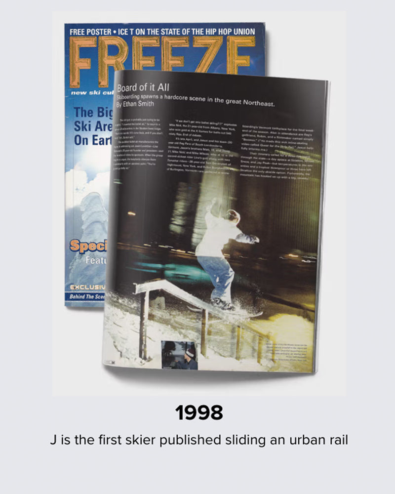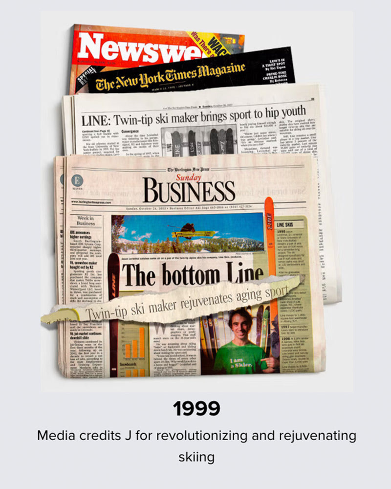 My name is Jason Levinthal, my friends call me “J”, and this is my ski company. I’m the skier who INVENTED THE FIRST TWIN-TIP SKI when I started the ski company “LINE” out of my parents’ garage in the 90’s. I even won a medal in THE FIRST X-GAMES Slopestyle! Since then I've launched and grown multiple ski brands working alongside some of the raddest artists, engineers and athletes in the industry. 30 years later, I’m still at it, doing everything I can to MAKE SKIING MORE FUNNER for more people, and these are my best skis yet. I hope you have as much fun riding them as I had creating them!